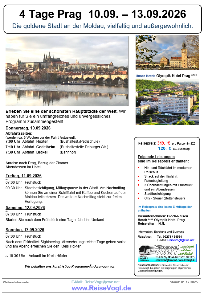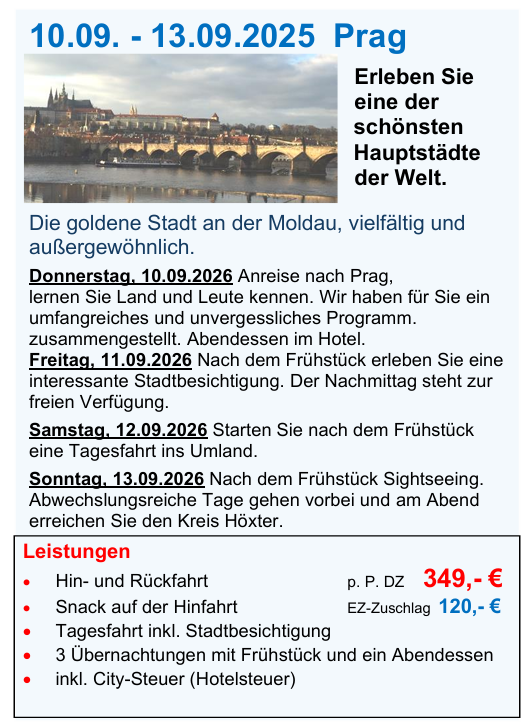Druckfehler im Flyer, Reise findet 10.09.-13.09.2026 statt !